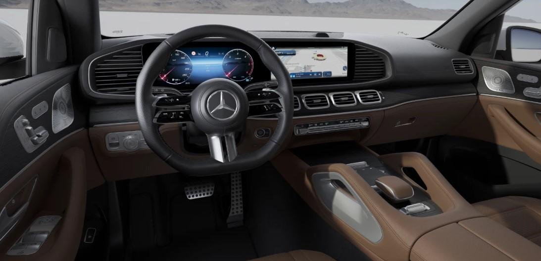 Mercedes-Benz GLS 450 d 4MATIC finished in Polar White with Leather - Bahia Brown/Black leather upholstery and Anthracite open-pore oak wood trim elements. Complied 01/26, this 270 kW 750 Nm turbo diesel GLS is an ex-demonstrator from Mercedes-Benz that comes with the balance of new car warranty and roadside assist until 01/02/2031, is equipped with a factory tow bar and comes with the below standard features: