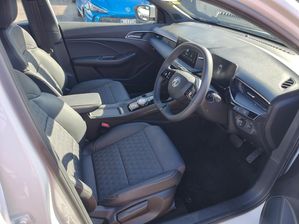 • 360 Camera • LED Headlights • 10.25" Infotainment Screen • 7" Cluster Screen • MG iSmart • Satellite navigation • Apple CarPlay® & Android Auto™ • 6 Speakers • MG Pilot Safety • Leather Steering Wheel • Electric Auto Fold Side Mirrors • PU & Fabric Seating • Keyless Entry • Sunroof • DAB (Digital Audio Broadcasting) • Electronic Gear Shifter • 3 Drive Mode