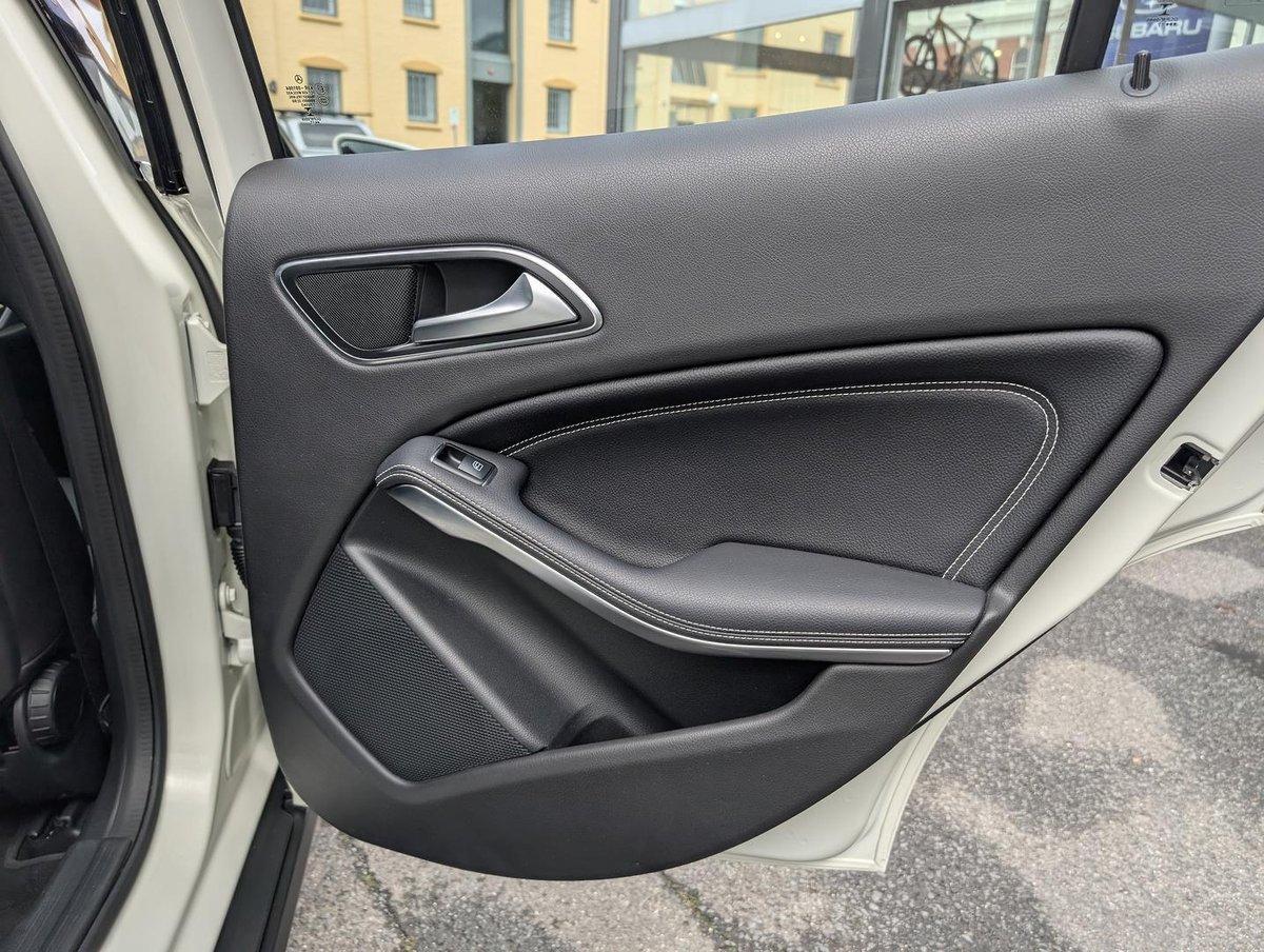 Mercedes-Benz GLA 220 d finished in Cirrus White with Black ARTICO upholstery and Sail Pattern Trim. This GLA was traded by our dealership and has been serviced by us. It presents in good used condition and comes with two keys, carpet mats and is further enhanced with the below factory packages: