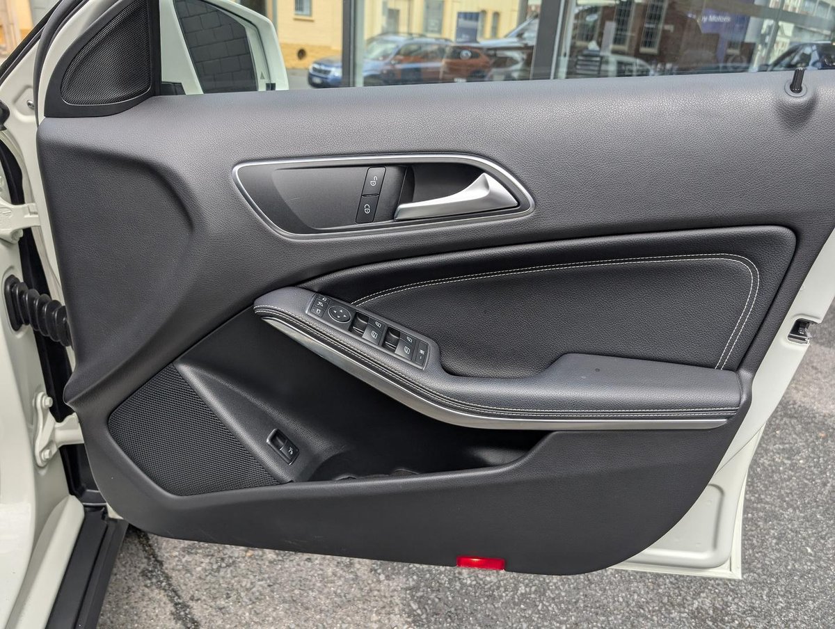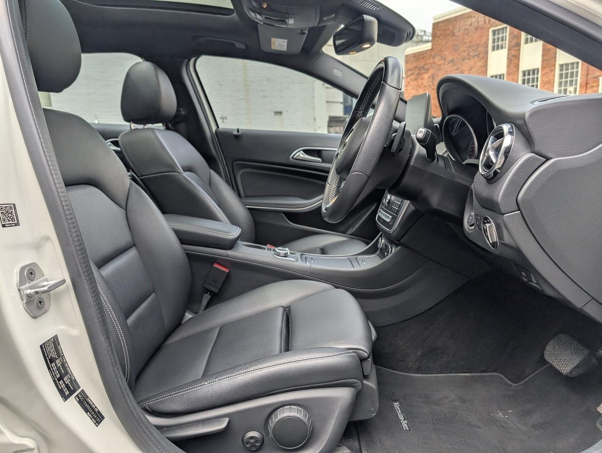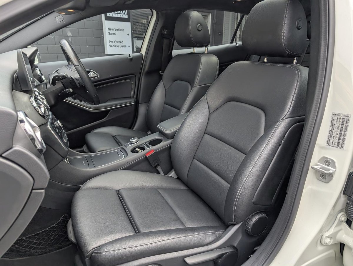 Mercedes-Benz GLA 220 d finished in Cirrus White with Black ARTICO upholstery and Sail Pattern Trim. This GLA was traded by our dealership and has been serviced by us. It presents in good used condition and comes with two keys, carpet mats and is further enhanced with the below factory packages: