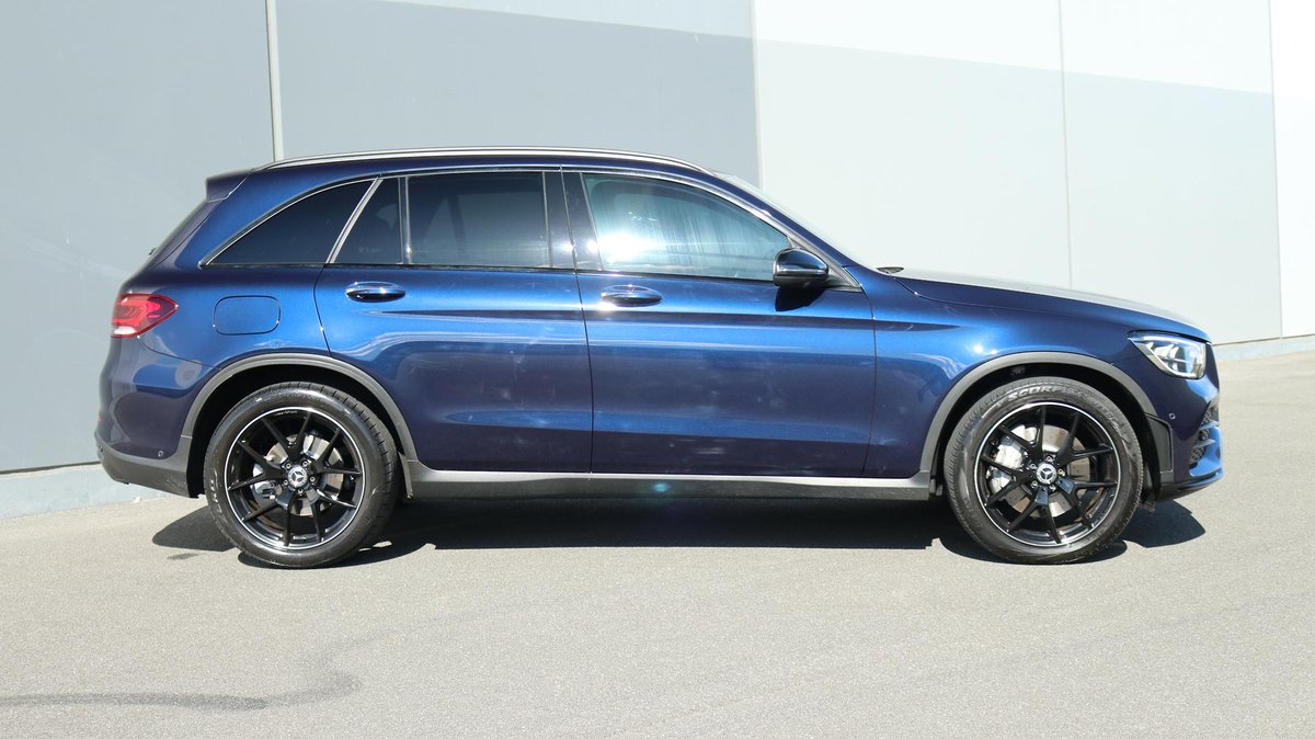 Mercedes-Benz GLC 200 finished in Cavansite Blue Metallic with Black Leather upholstery with red stitching and Dark Aluminium Trim. Originally sold new and serviced by us for its single local owner, now traded back through our dealership, this GLC includes two keys, the balance of the Mercedes-Benz new car warranty and roadside until 13/07/2027, is eligible for Mercedes-Benz Certified warranty and roadside extension and is further enhanced by the following premium factory fitted package: