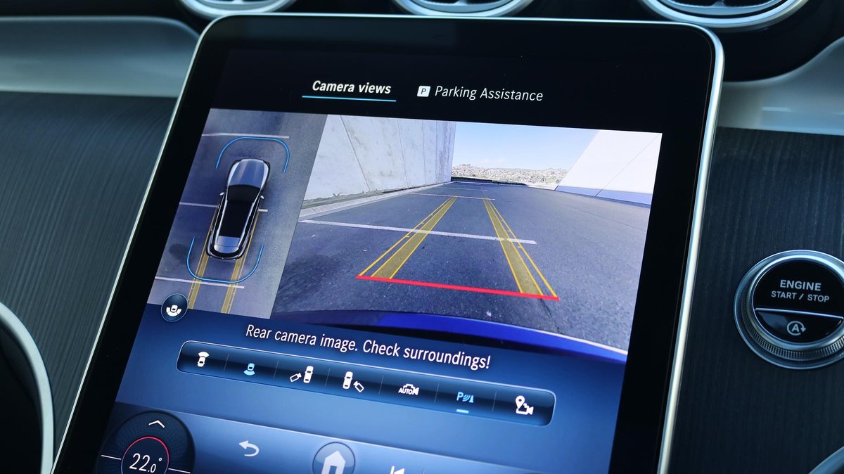 - 360° parking camera, Blind Spot Assist, Active Lane Keeping, Traffic Sign Assist, PRE-SAFE®, and 10 airbags.