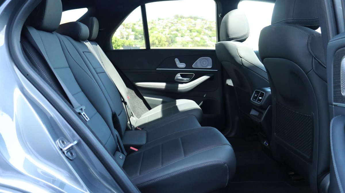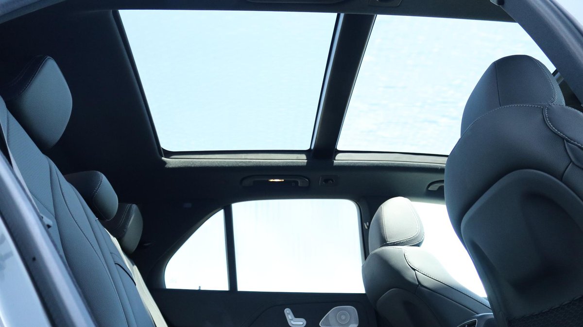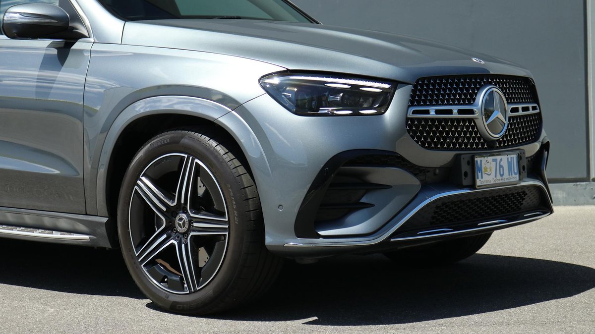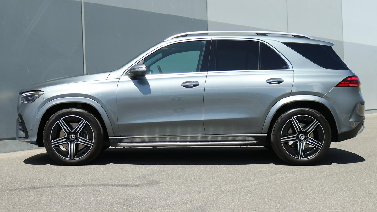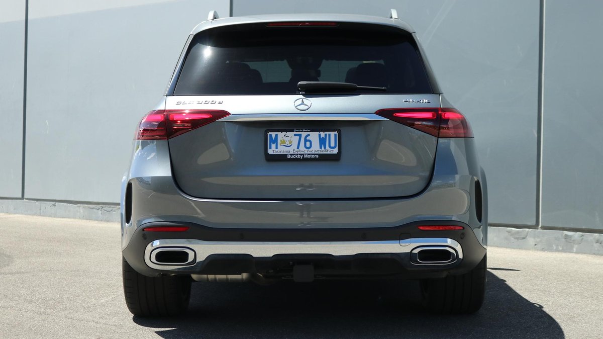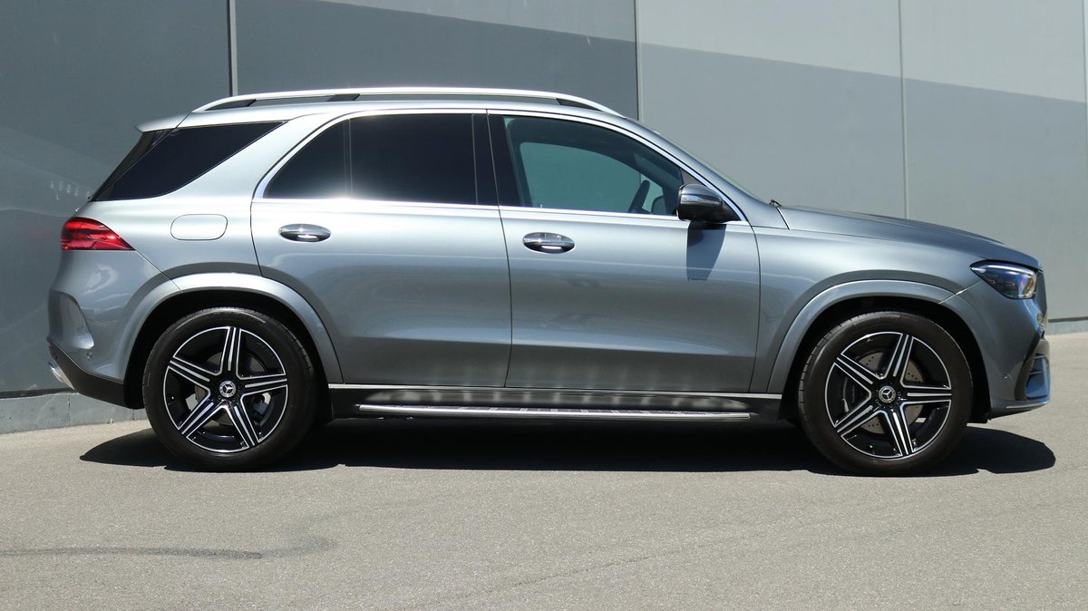 Mercedes-Benz GLE 300d 4MATIC SUV, finished in Selenite Grey Metallic over Black ARTICO upholstery, complemented by Anthracite open-pore oak wood trim.