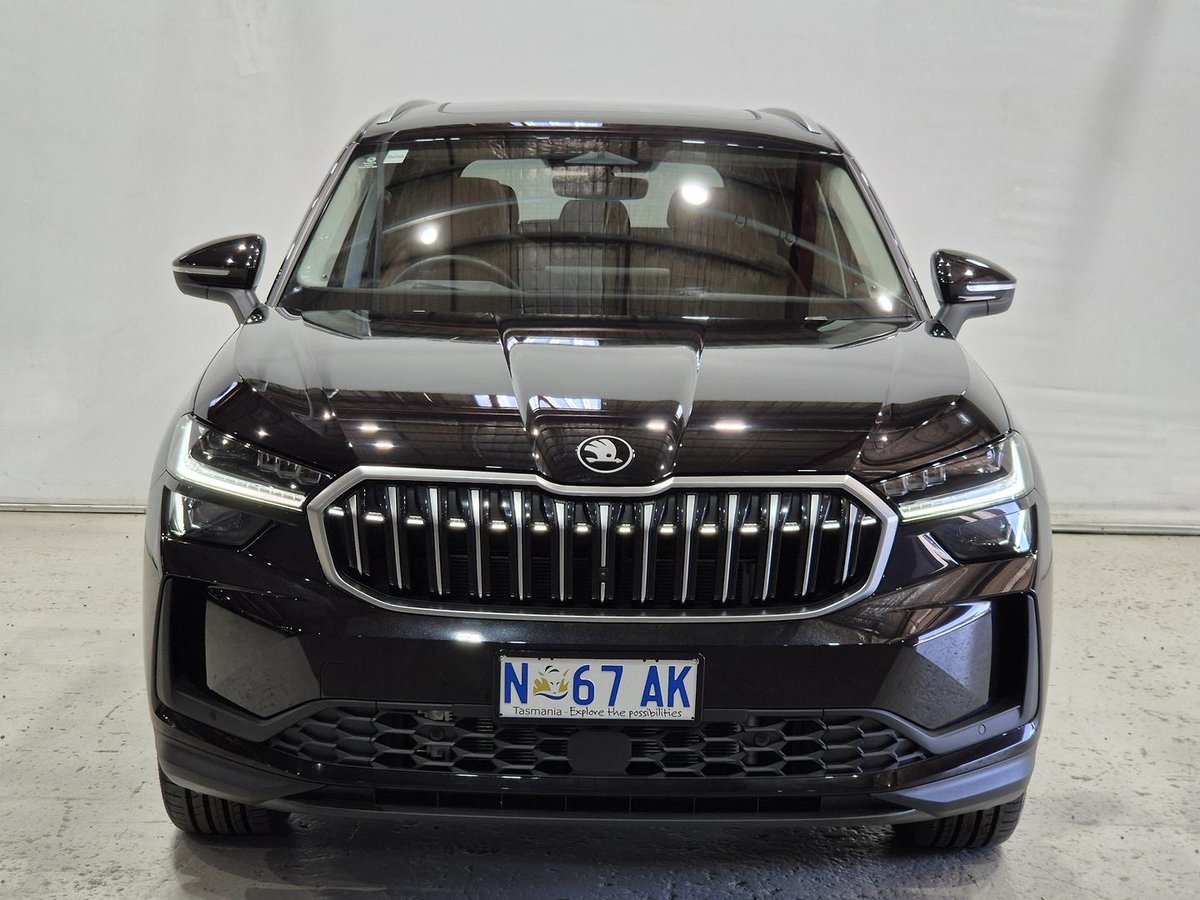 MY25 Kodiaq Select Launch Edition in Magic Black Metallic paint with upgraded Cognac Leather Interior with Massage Front Seats.