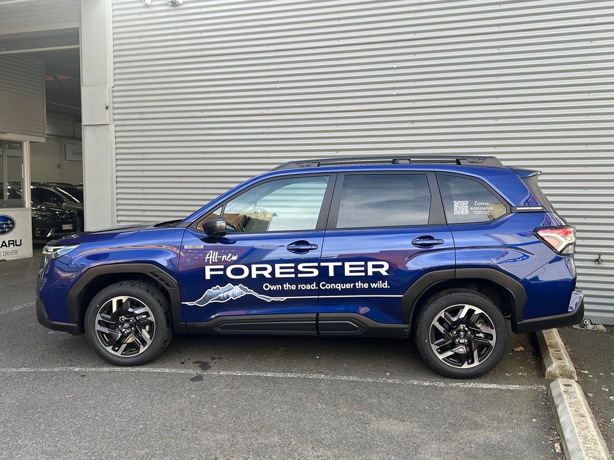 Subaru Forester Hybrid AWD finished in Sapphire Blue with black upholstery; this vehicle has the balance of new car warranty until the 4/07/2030 and is enhanced by the following great features