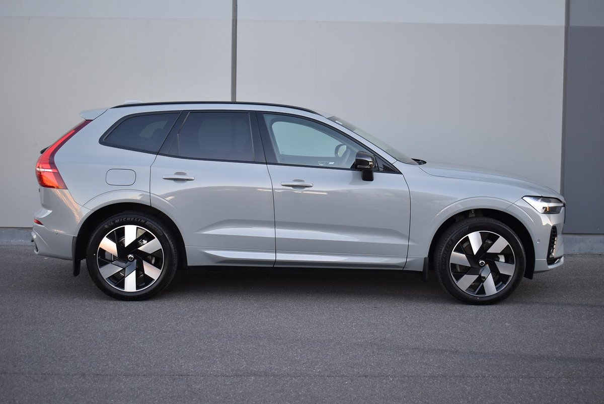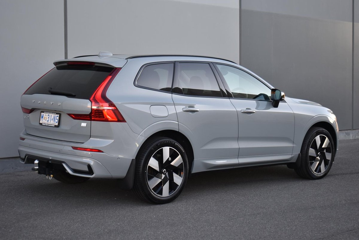MY24 Volvo XC60 Plug in Hybrid Plus T8 finished in Vapour Grey with Charcoal Leather Interior.